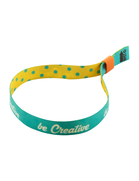 • na zakázku vyrobený, RPET polyesterový festivalový náramek s barevným plastovým bezpečnostním zámkem