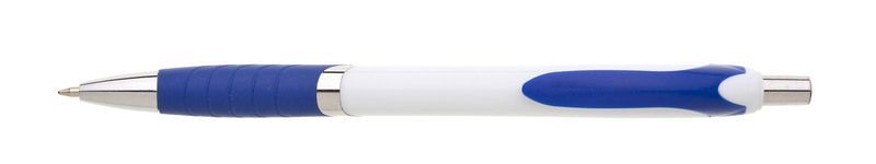 • plastová propiska s bílým tělem a barevnými úchopem a klipem, stříbrné doplňky
