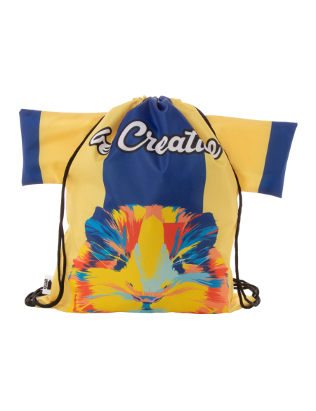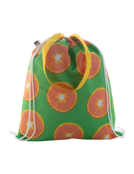 • vak na stažení šňůrkou na zakázku s barevnými šňůrkami a dlouhými uchy, 190T polyester RPET, s výrazným štítkem RPET
