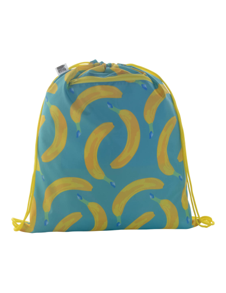 • vak na stahování šňůrkou na zakázku s přední kapsou na zip, 190T RPET polyester, s etiketou s označením RPET