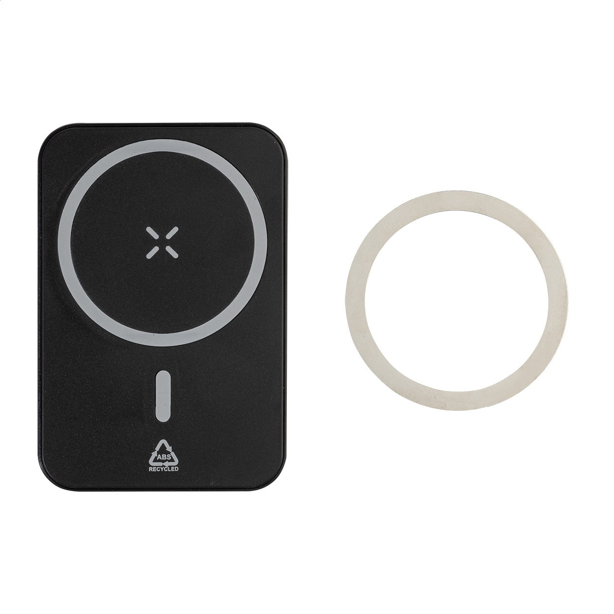 • Power banka z recyklovaného ABS s baterií 5000 mAh a vestavěnou magnetickou bezdrátovou rychlonabíječkou (15 W). S USB-C vstupem a nabíjecím portem.