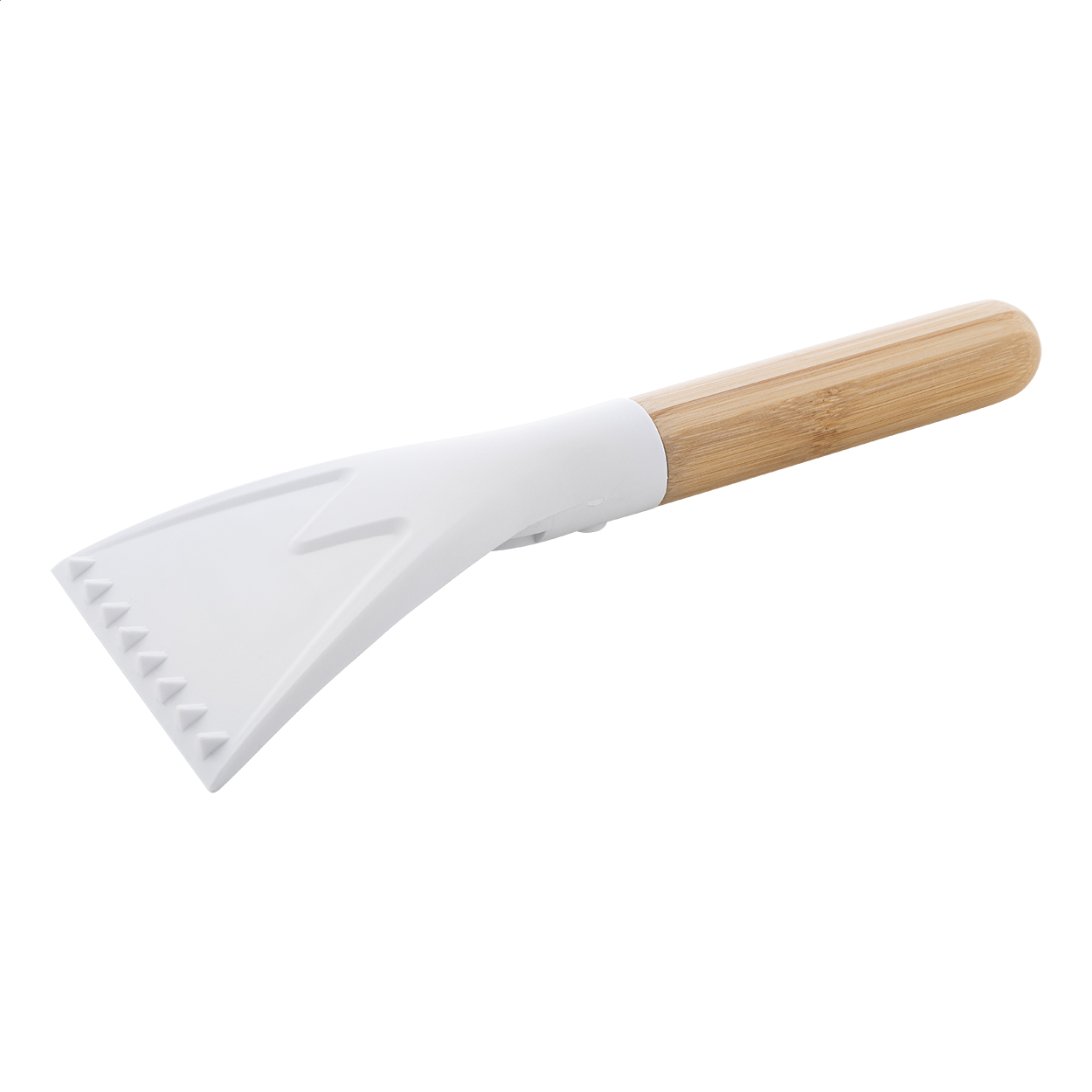 • Škrabka na led z recyklovaného ABS plastu s bambusovou rukojetí.