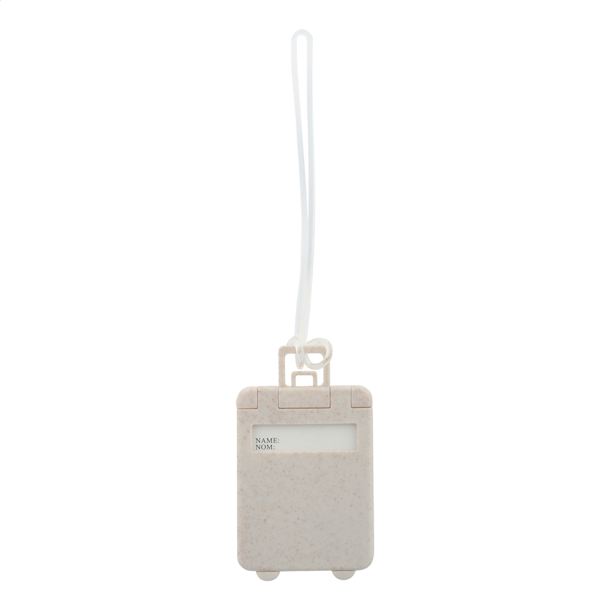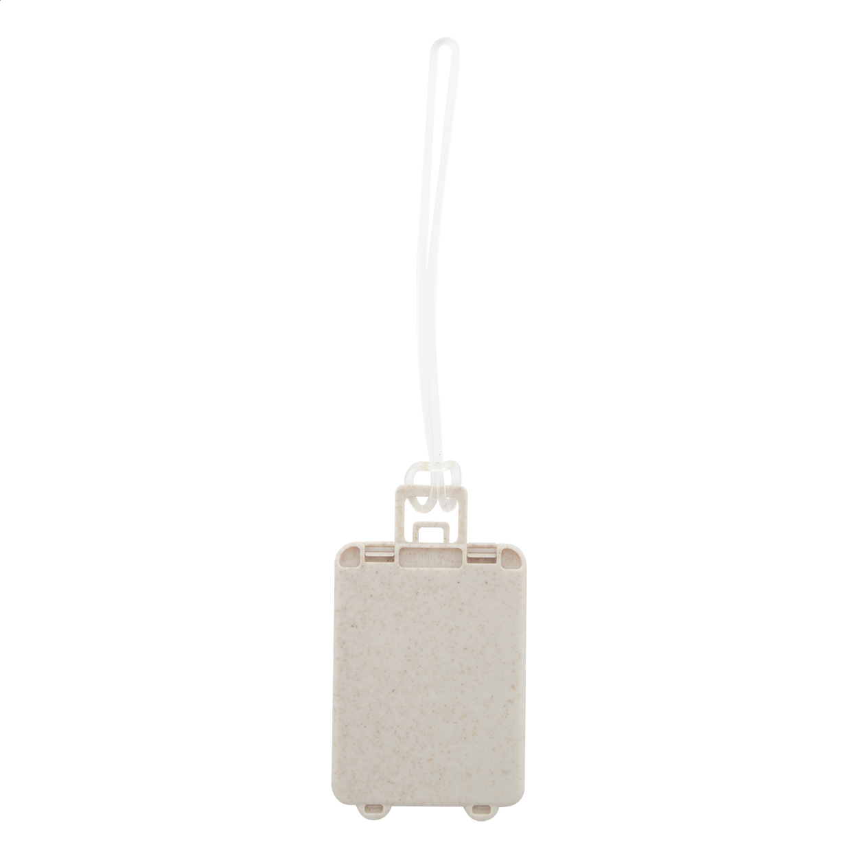 • Ekologická plastová visačka na zavazadla z pšeničné slámy ve tvaru kufru, s elastickým páskem.
