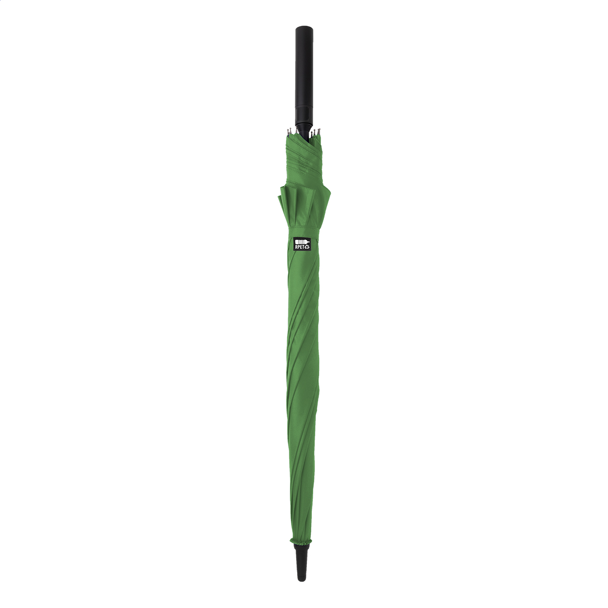 • Velký, automatický větruodolný deštník s 8 panely, celosklolaminátová rukojeť a rám, ABS rukojeť. Pongee 190T RPET. S výrazným štítkem RPET.