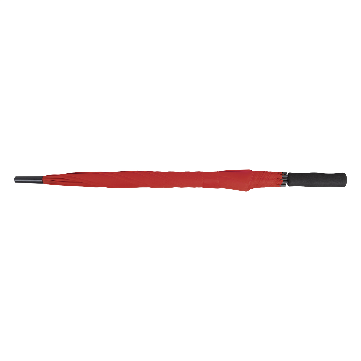 • Velký, automatický větruodolný deštník s 8 panely, kovovou tyčkou a rámem, ABS žebry a rukojetí z EVA pěny, 190T polyester.