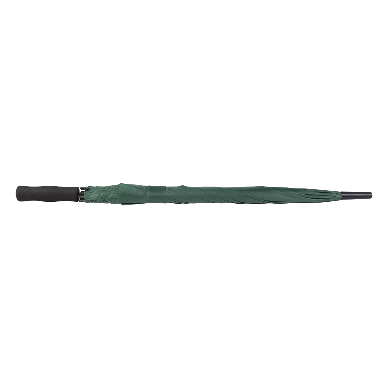 • Automatický, větruodolný deštník s 8 panely, držadlem z EVA materiálu, kovovou tyčí a konstrukcí ze skelných vláken, 170T polyester.