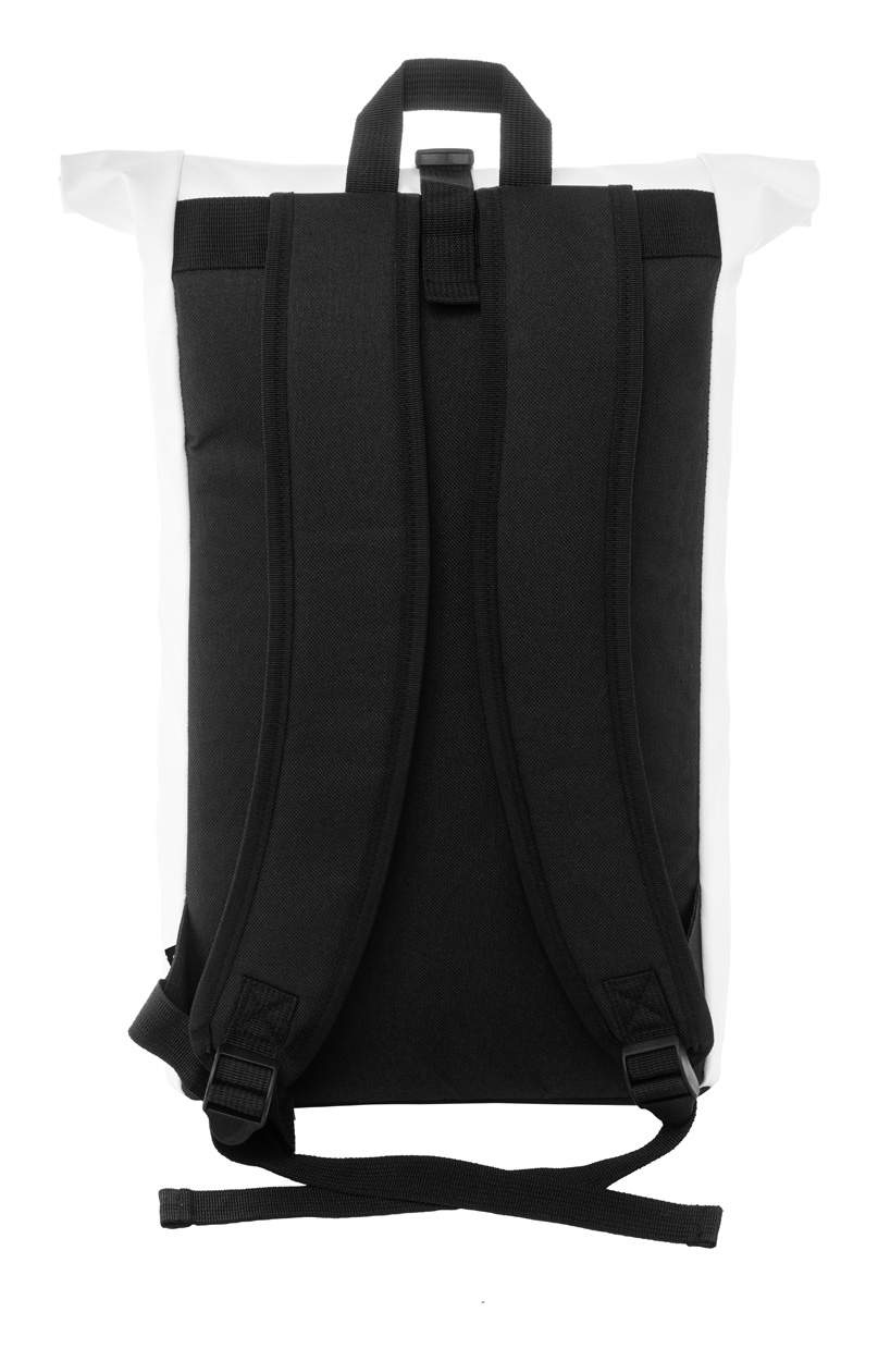 • vodotěsný, měkký rolovací batoh z recyklované PU kůže se zapínáním na přezku, přední kapsou na zip a polstrovanou přihrádkou na notebook (15"), s polstrovanými zády a ramenními popruhy, s výrazným recyklovaným PU štítkem