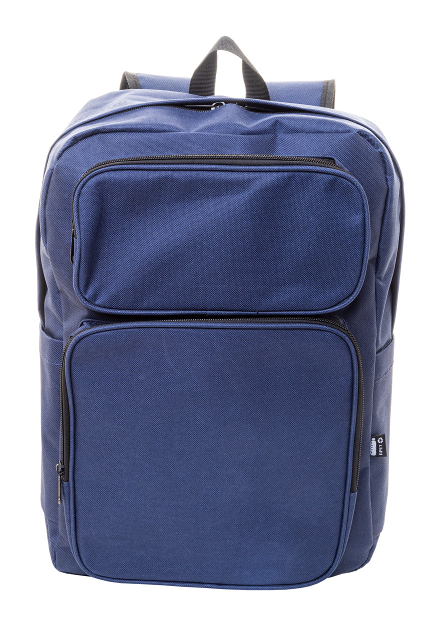 • batoh RPET s hlavním oddílem na zip, 2 předními kapsami na zip, bočními kapsami a polstrovanou přihrádkou na notebook (15") a tablet (10"), s polstrovanými zády a ramenními popruhy, polyester 600D RPET, s výrazným štítkem RPET