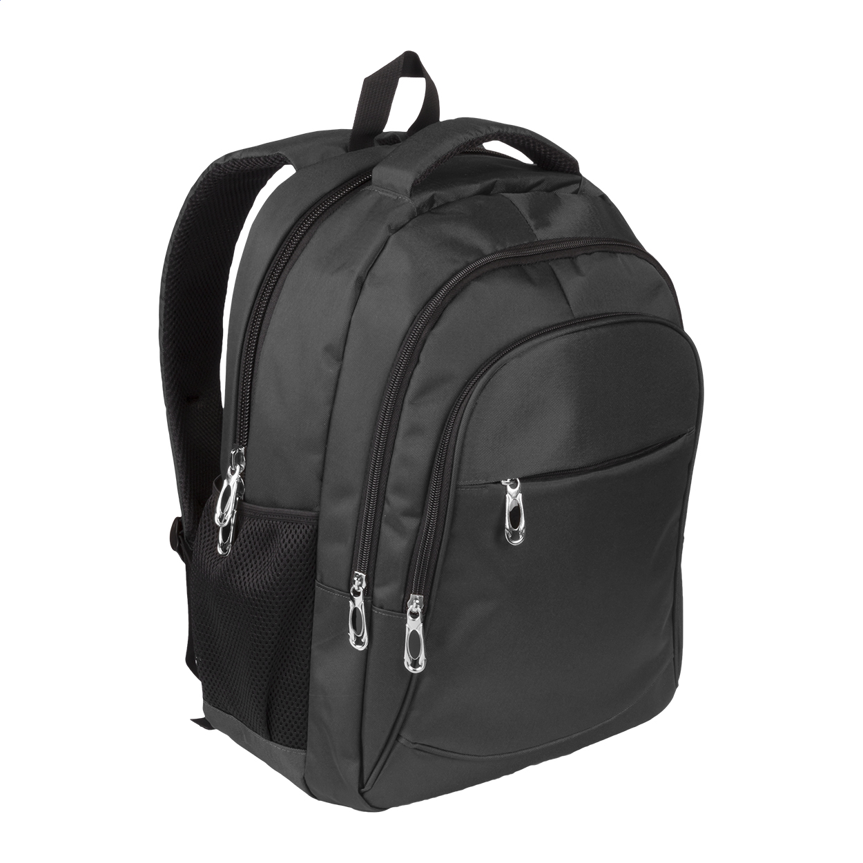 • Batoh s mnoha přihrádkami na zip, vypolstrovanou kapsou na laptop (15"), zády a popruhy, 600D nylon.