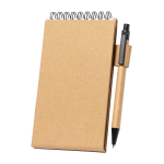 • spirálový poznámkový blok z recyklovaného papíru s 30 linkovanými listy, 25 samolepicími papírky a 125 značovači stránek (v 5 různých barvách), s funkcí držáku mobilního telefonu.
