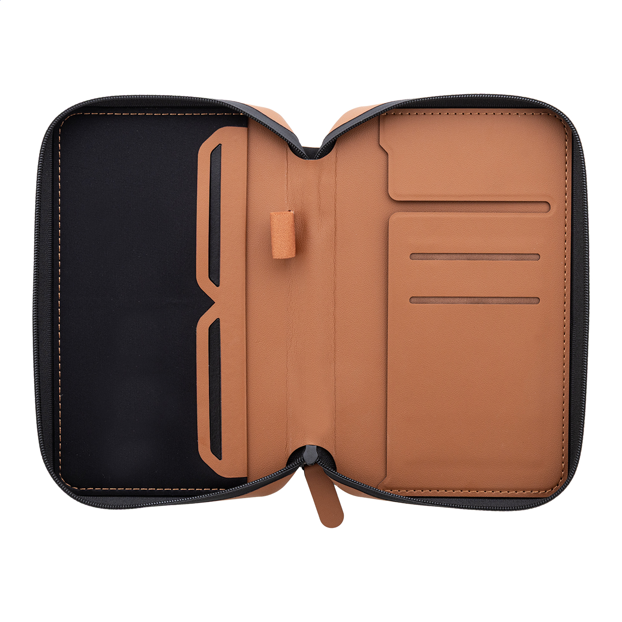 • Luxusní cestovní organizér a pouzdro na pas na zip z recyklované umělé kůže. S několika vnitřními kapsami na dokumenty, karty a cestovní nezbytnosti.