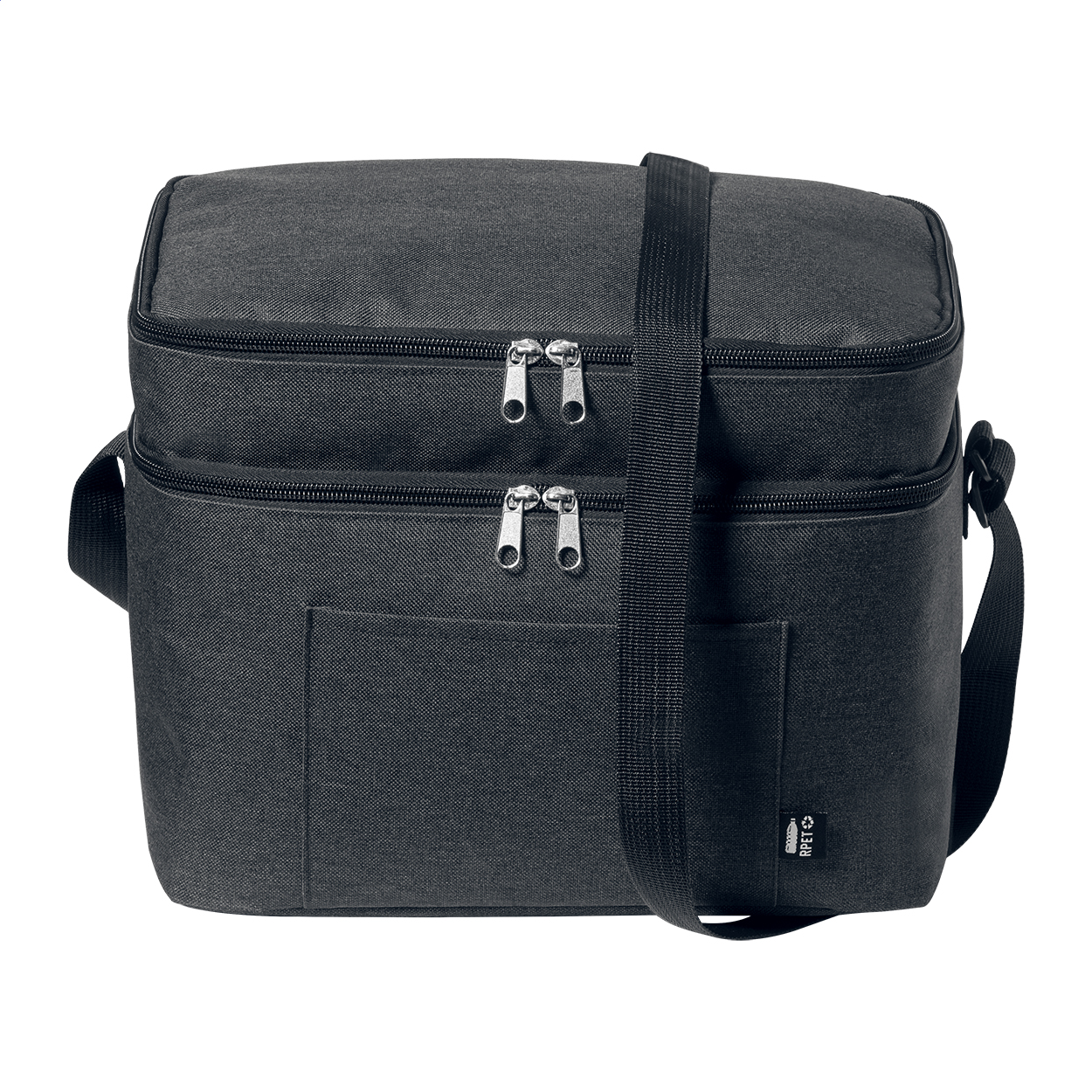 • Chladicí taška z 600D RPET polyesteru s PEVA výstelkou, se 2 přihrádkami na zip a nastavitelným ramenním popruhem. S výrazným štítkem RPET.