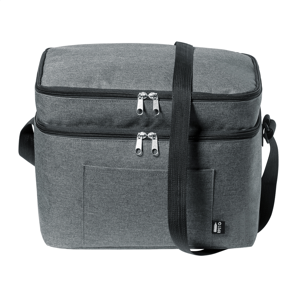 • Chladicí taška z 600D RPET polyesteru s PEVA výstelkou, se 2 přihrádkami na zip a nastavitelným ramenním popruhem. S výrazným štítkem RPET.