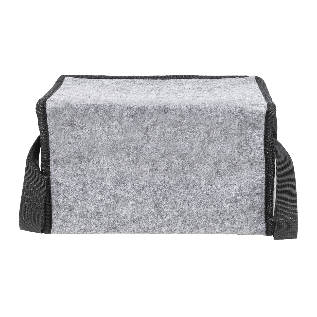 • Chladicí taška na zip z RPET plsti s hliníkovým polstrováním, přední kapsou a bočními rukojeťmi. S výrazným štítkem RPET.