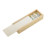 • na zakázku vyrobené domino z březové překližky s 28 dílky a bavlněným pouzdrem