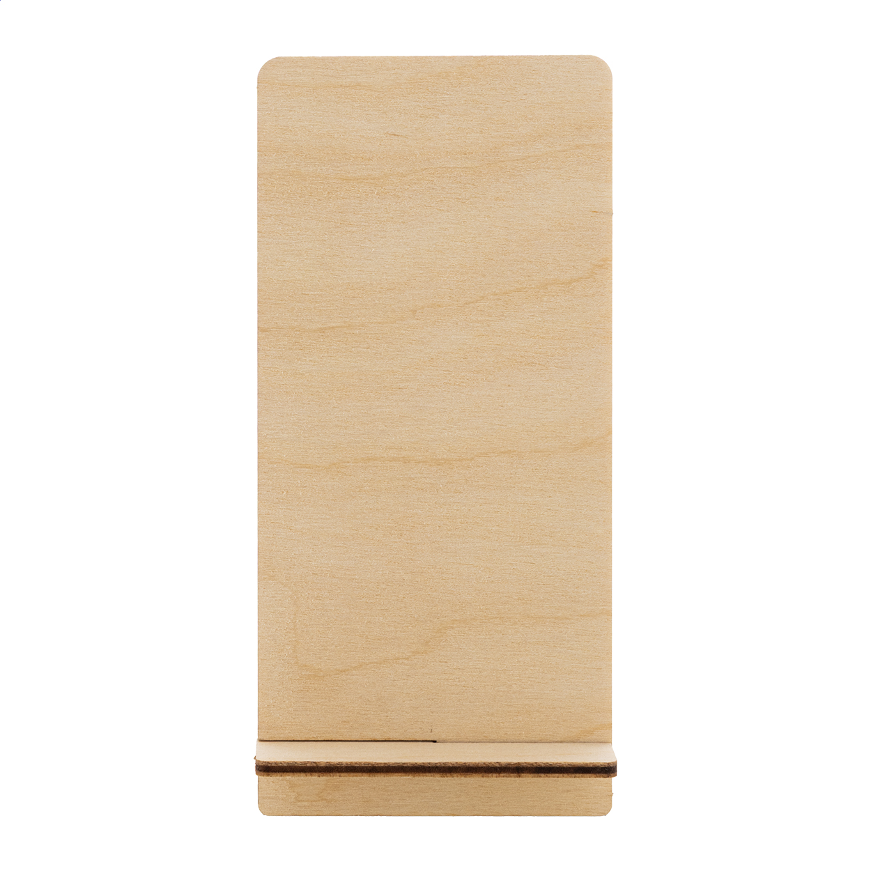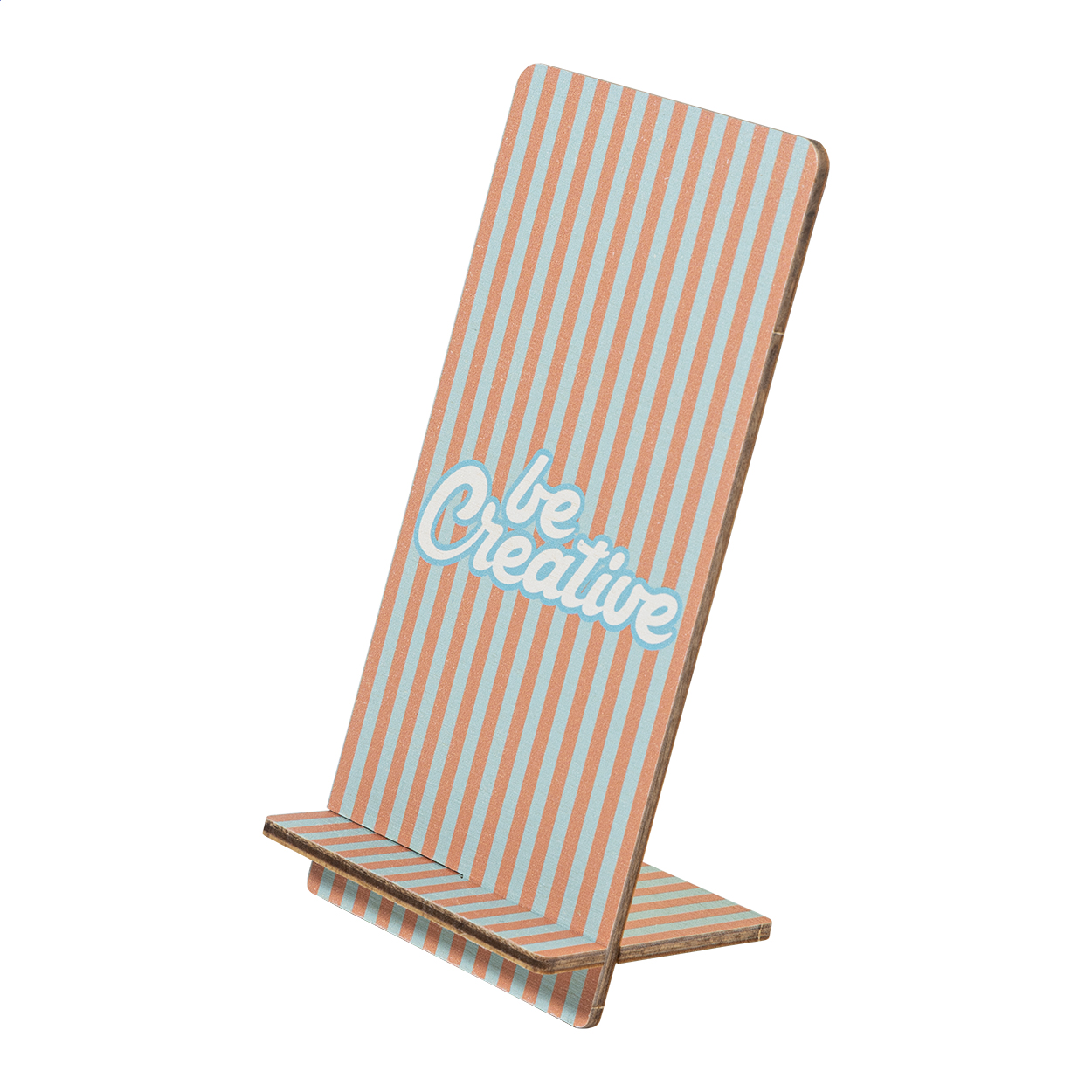 • Držák na mobilní telefon na zakázku s barevným potiskem z březové překližky.