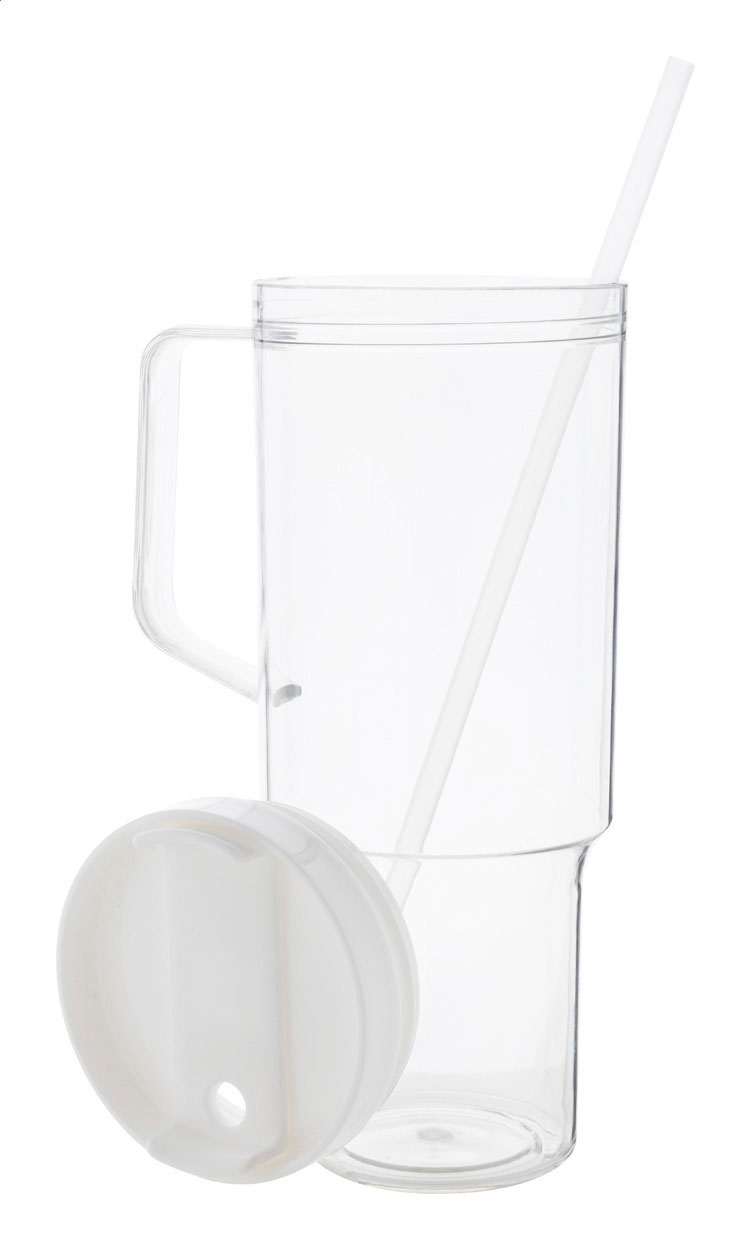 • Jednostěnný cestovní hrnek z RPET s PP víčkem na pití a brčkem v odpovídající barvě, 1200 ml.