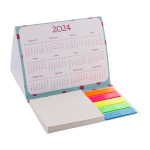 • zakázkový papírový kalendář se samolepícími lístky, obsahuje 50 listů samolepicích papírů z recyklovaného papíru (75×75 mm) a 100 plastových fóliových značkovačů stránek v 5 různých barvách (44×12 mm)