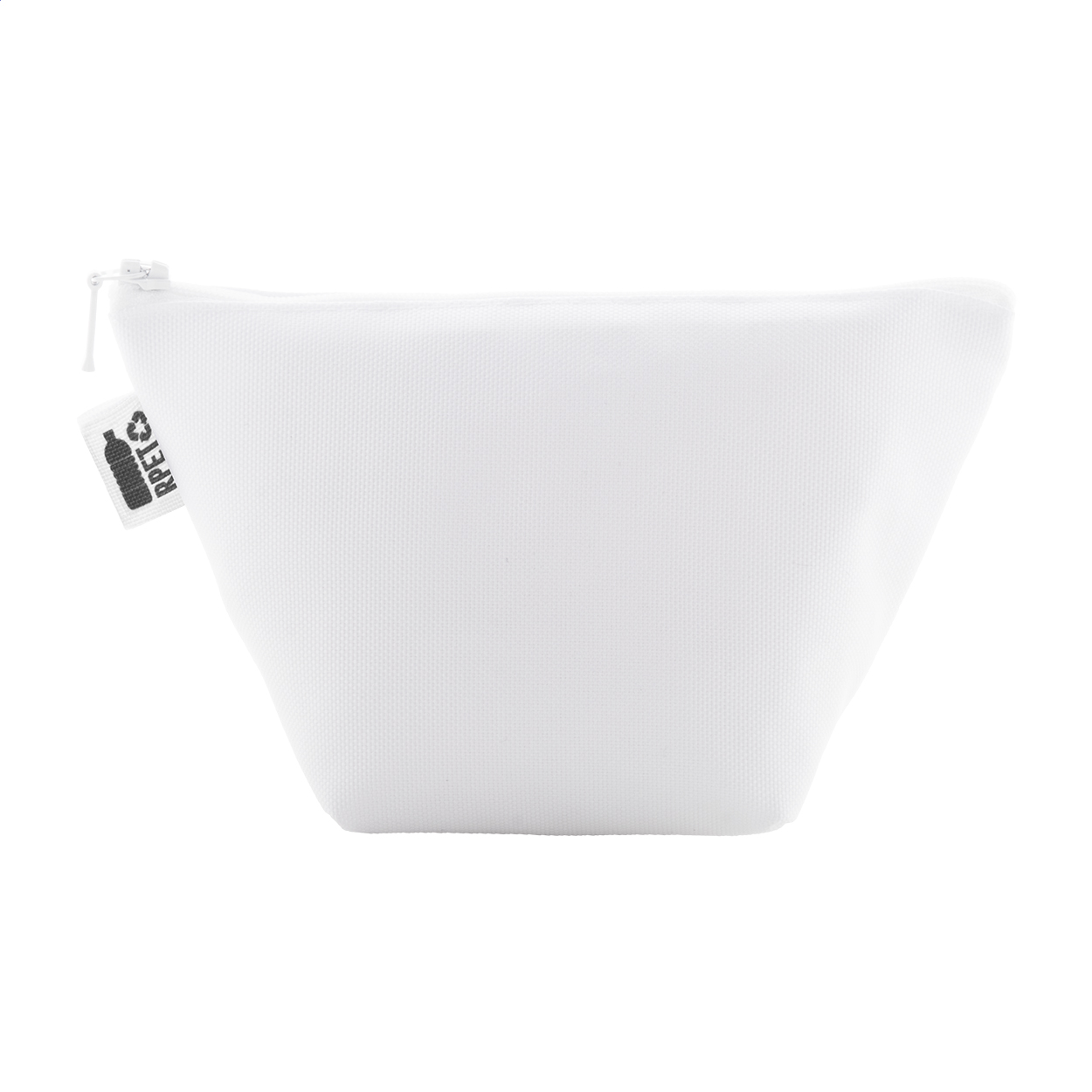 • Na zakázku vyrobená kosmetická taštička na zip z 600D RPET polyesteru. S výrazným štítkem RPET a celoplošně tištěnou sublimační grafikou, cena nezahrnuje tiskovou přípravu.