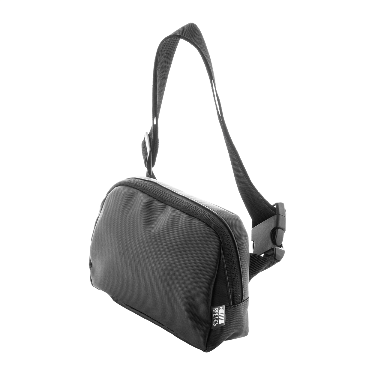 • Vodotěsná RPET ledvinka se 2 přihrádkami na zip, síťovanými vnitřními kapsami s organizérem a nastavitelným popruhem. Polyester 600D RPET potažený PU, s výrazným štítkem RPET.