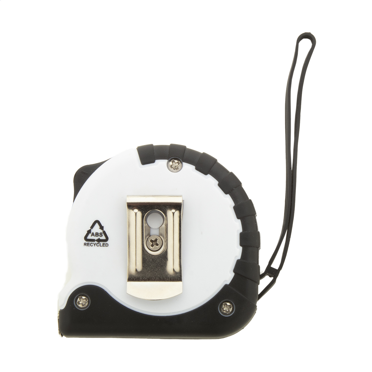 • Svinovací metr z recyklovaného ABS plastu s funkcí zámku, kovovou sponou a páskem na ruku, 3m.