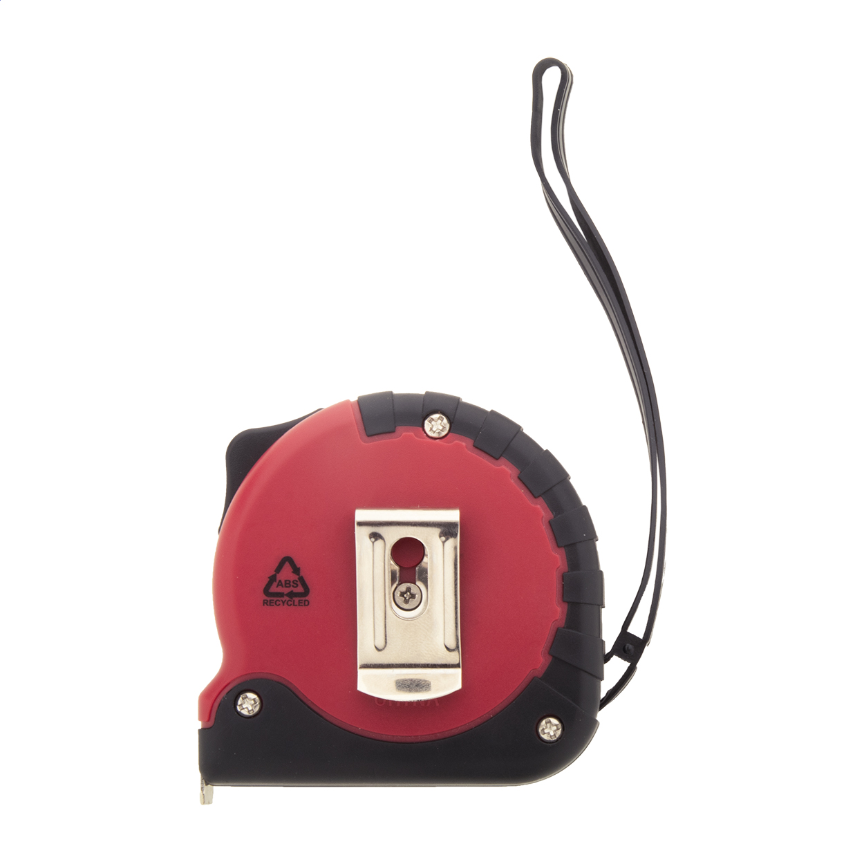 • Svinovací metr z recyklovaného ABS plastu s funkcí zámku, kovovou sponou a páskem na ruku, 5m.