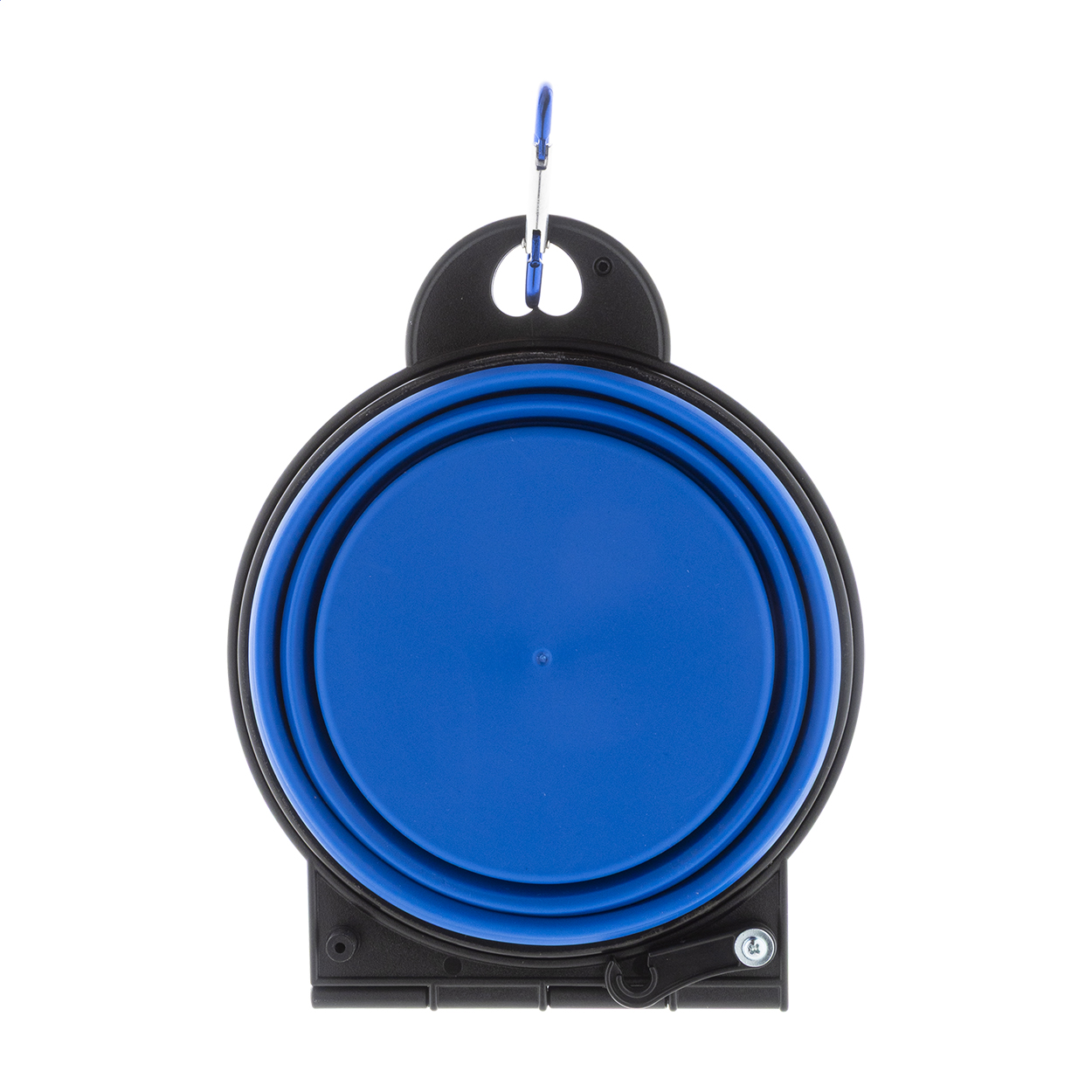 • Skládací miska pro domácí mazlíčky z odolného TPE se dvěma přihrádkami o objemu 450 ml a barevně sladěnou hliníkovou karabinou.