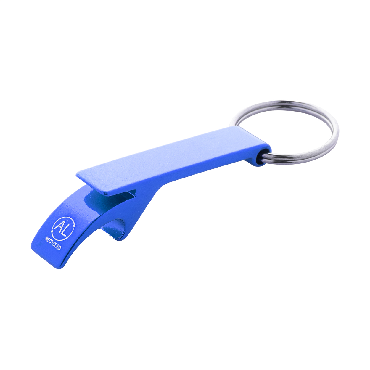• Otvírák na láhve a plechovky z recyklovaného hliníku s kovovým kroužkem na klíče.