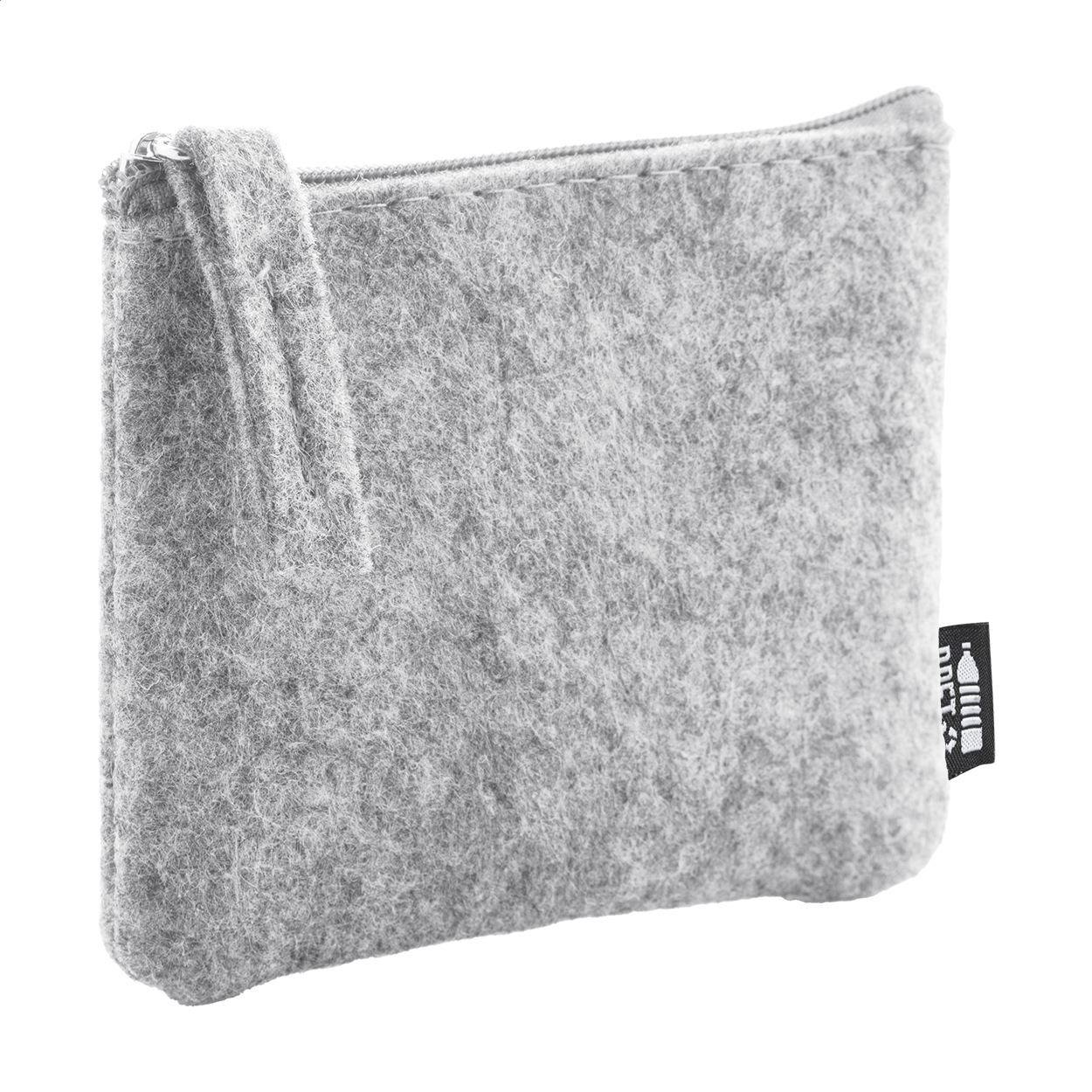 • Peněženka z RPET plsti na zip. S výrazným štítkem RPET.