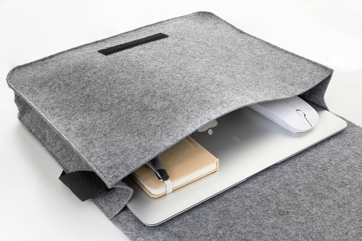 • RPET plstěná brašna na notebook s nastavitelným ramenním popruhem. Vhodné pro notebooky do 15". S výrazným štítkem RPET.