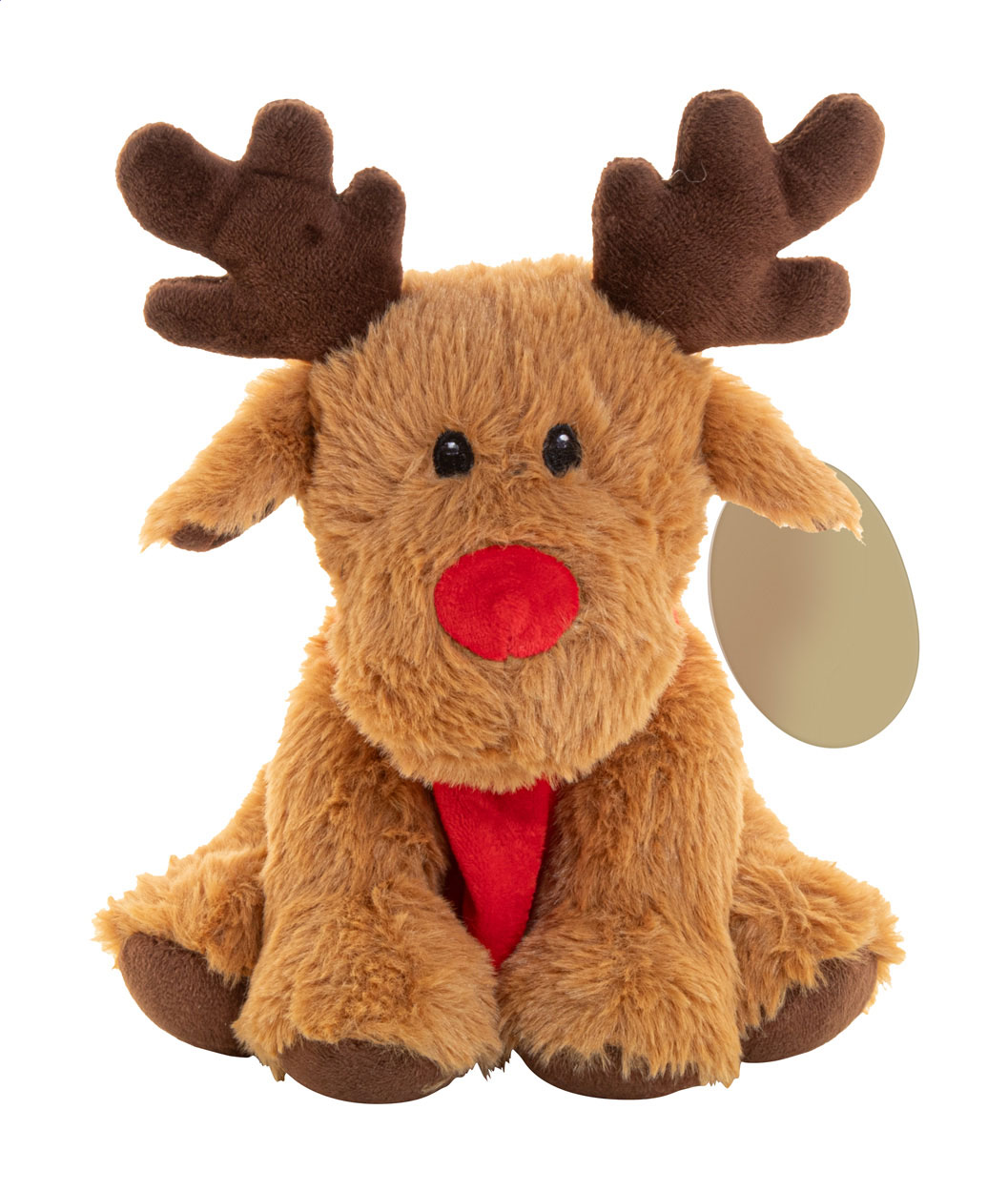• RPET plyšový vánoční sob se šálou. S tisknutelnou visačkou z kraftového papíru na uchu.