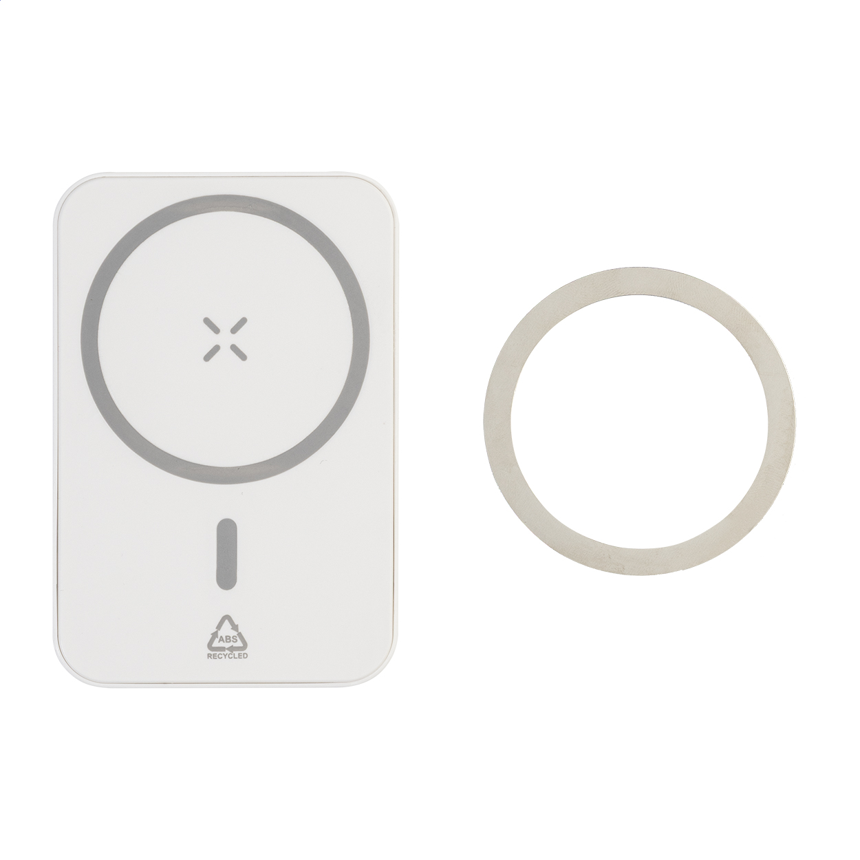 • Power banka z recyklovaného ABS s baterií 5000 mAh a vestavěnou magnetickou bezdrátovou rychlonabíječkou (15 W). S USB-C vstupem a nabíjecím portem.