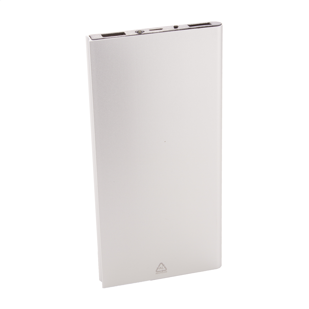 • USB power banka v pouzdře z recyklovaného hliníku se zabudovanou solární nabíječkou a 4000 mAh baterií. Se 2 porty USB a 1 portem USB-C pro nabíječku. Vstupní port USB-C. Včetně USB nabíjecího kabelu.