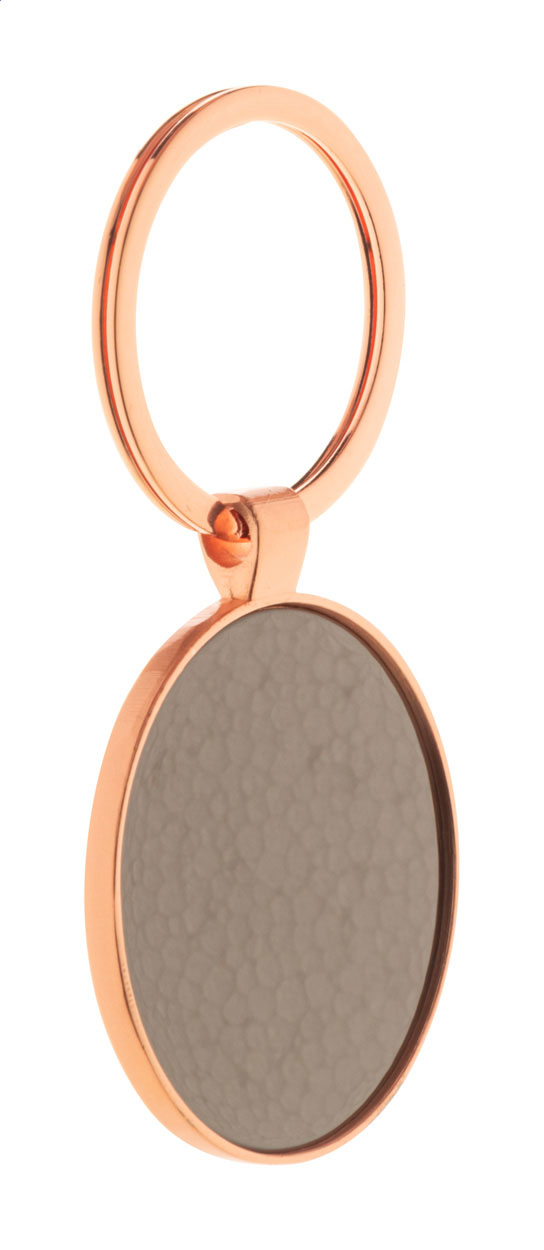 • Kulatý kovový přívěsek na klíče ve zlatém provedení s bronzovým plátem. V kraftové papírové krabici.