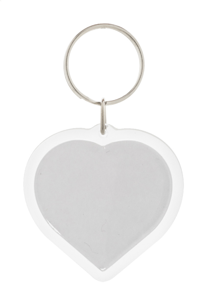 • Přívěšek na klíče ve tvaru srdce z akrylu s barevnou papírovou vložkou na zakázku a kovovým kroužkem.