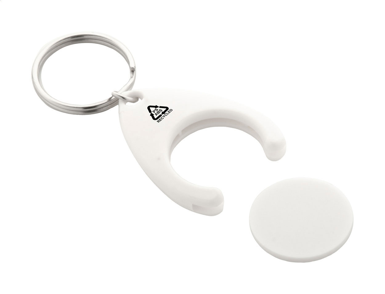 • Přívěšek na klíče z recyklovaného ABS a recyklovaného plastu PS s mincí do nákupního vozíku a kovovým kroužkem. Velikost mince: ø24×2 mm.