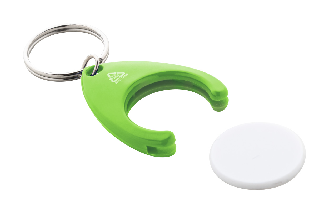 • Přívěšek na klíče z recyklovaného ABS a recyklovaného plastu PS s mincí do nákupního vozíku a kovovým kroužkem. Velikost mince: ø24×2 mm.