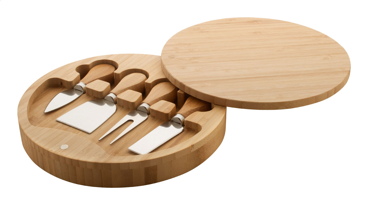 • Kulaté bambusové prkénko se sadou nožů na sýr z nerezové oceli 4 ks.