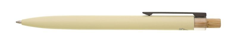 • designová kovová propiska z recyklovaného hliníku, tmavý kovový klip je uchycen v ozdobné transparentní koncovce, doplněné bambusovým cvakátkem