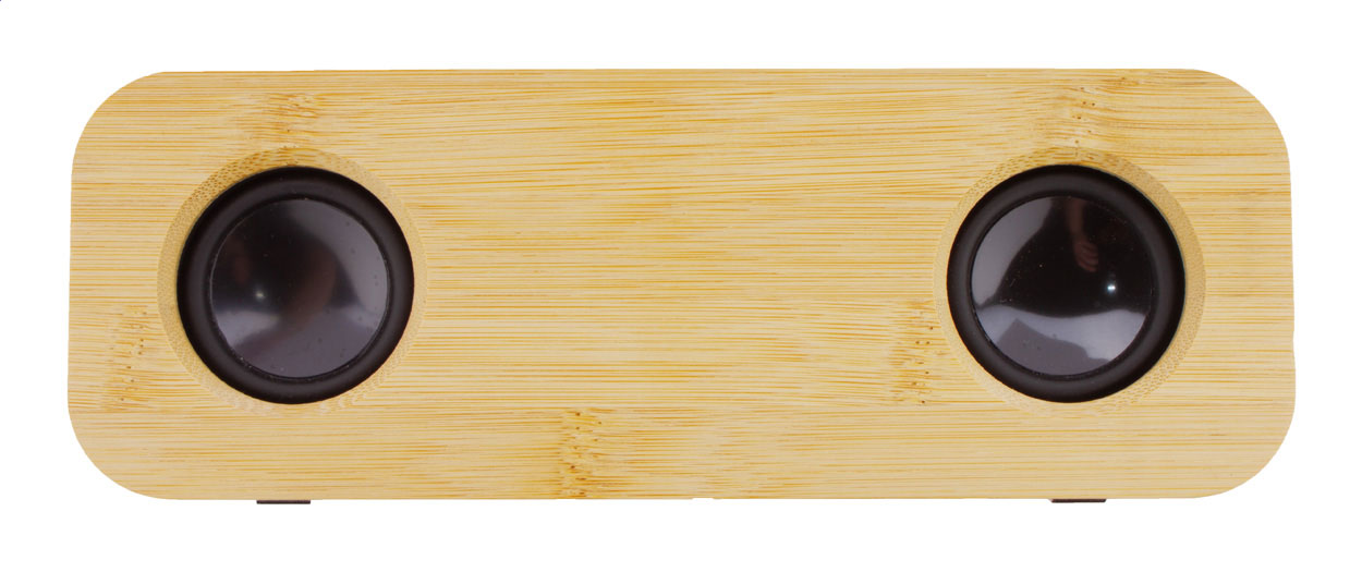 • Bezdrátový reproduktor v recyklovaném krytu z ABS a bambusu se 2 reproduktory a vestavěnou dobíjecí baterií. S funkcí hands-free volání a FM rádia. Včetně nabíjecího kabelu USB.