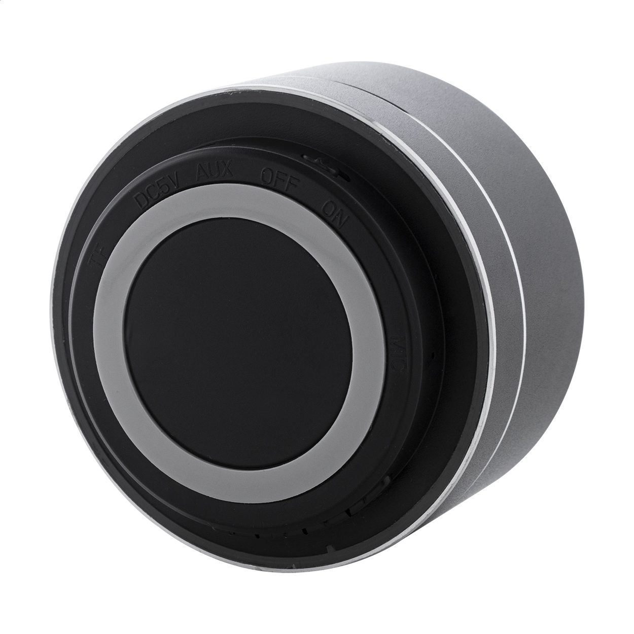• Bezdrátový reproduktor z recyklovaného hliníku s kovovou síťovinou, LED světlem na spodní straně a dobíjecí baterií (300 mAh). S funkcí handsfree hovorů a přehrávání MP3 z micro SD karty. Včetně nabíjecího kabelu USB.