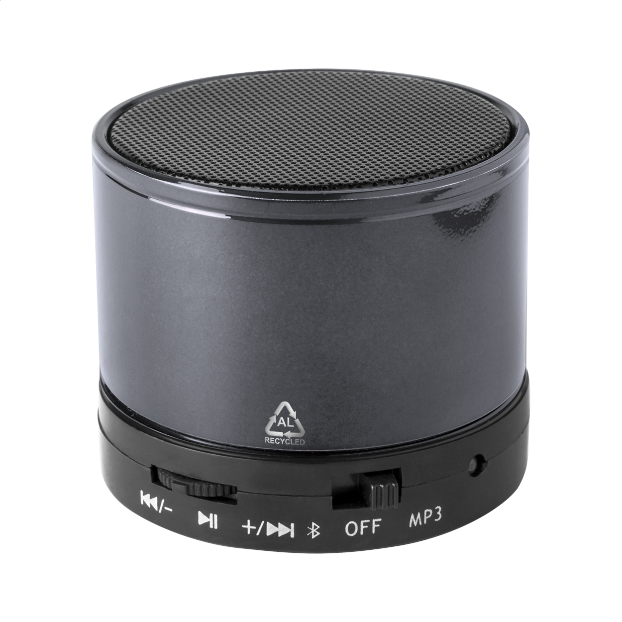 • Bezdrátový reproduktor z recyklovaného hliníku a recyklovaného ABS krytu. S rádiem, přehrávačem MP3, funkcí handsfree a vestavěnou dobíjecí baterií (300 mAh). Včetně USB nabíječky a aux-in kabelu.