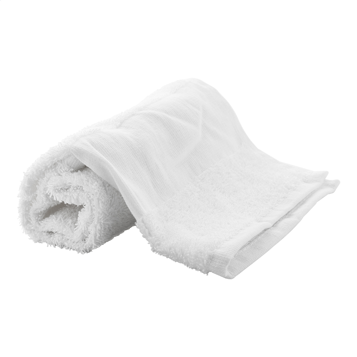 • Bavlněný froté ručník pro hosty s poutkem na zavěšení a potiskovatelnou bordurou. 100% bavlna, 360 g/m².