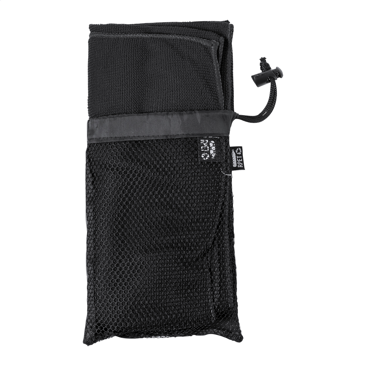 • Sportovní ručník z mikrovlákna v přenosném pouzdře RPET s výrazným štítkem RPET. Polyester RPET, 160 g/m².