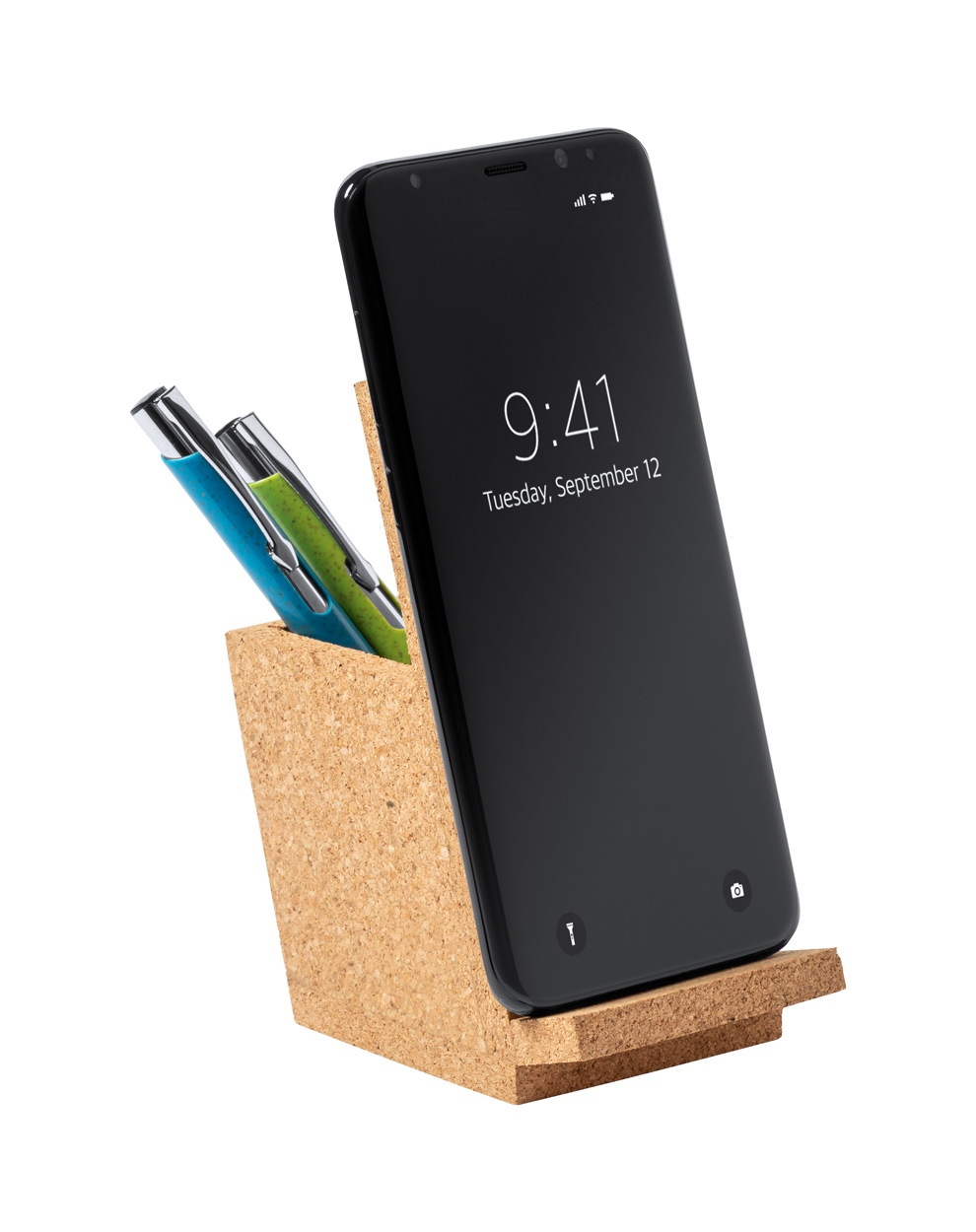 • stojan na pero z přírodního korku s funkcí držáku na mobil