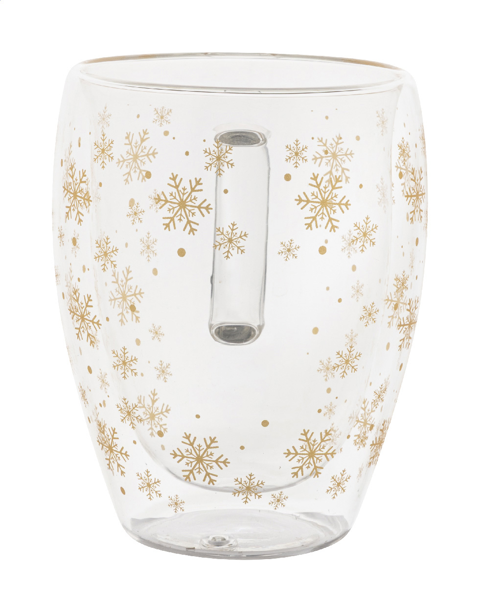 • Dvoustěnný termohrnek z borosilikátového skla s vánočním motivem sněhových vloček, 350 ml.