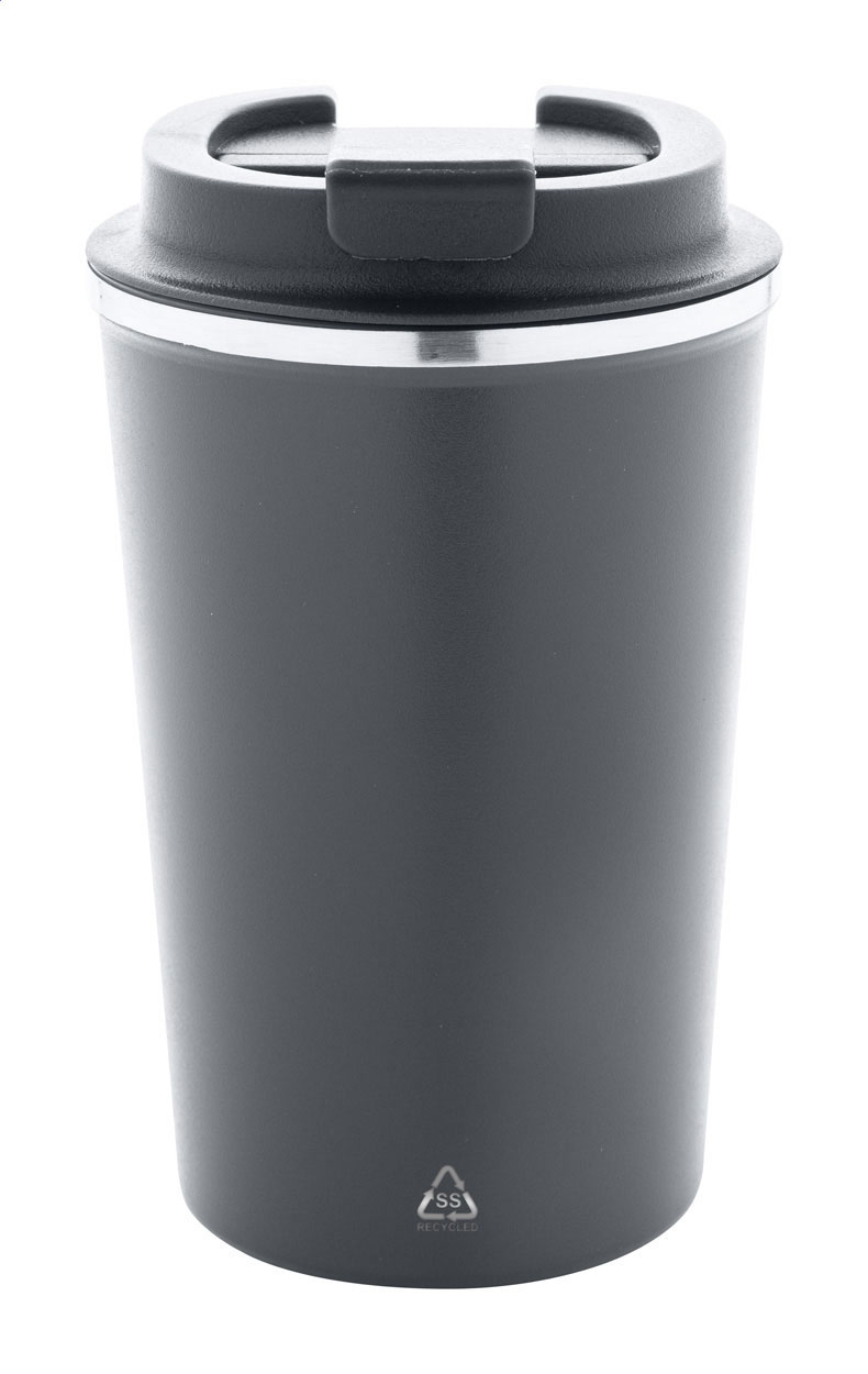 • Dvoustěnný termo hrnek z recyklované nerezové oceli s víčkem na pití z PP, 350 ml