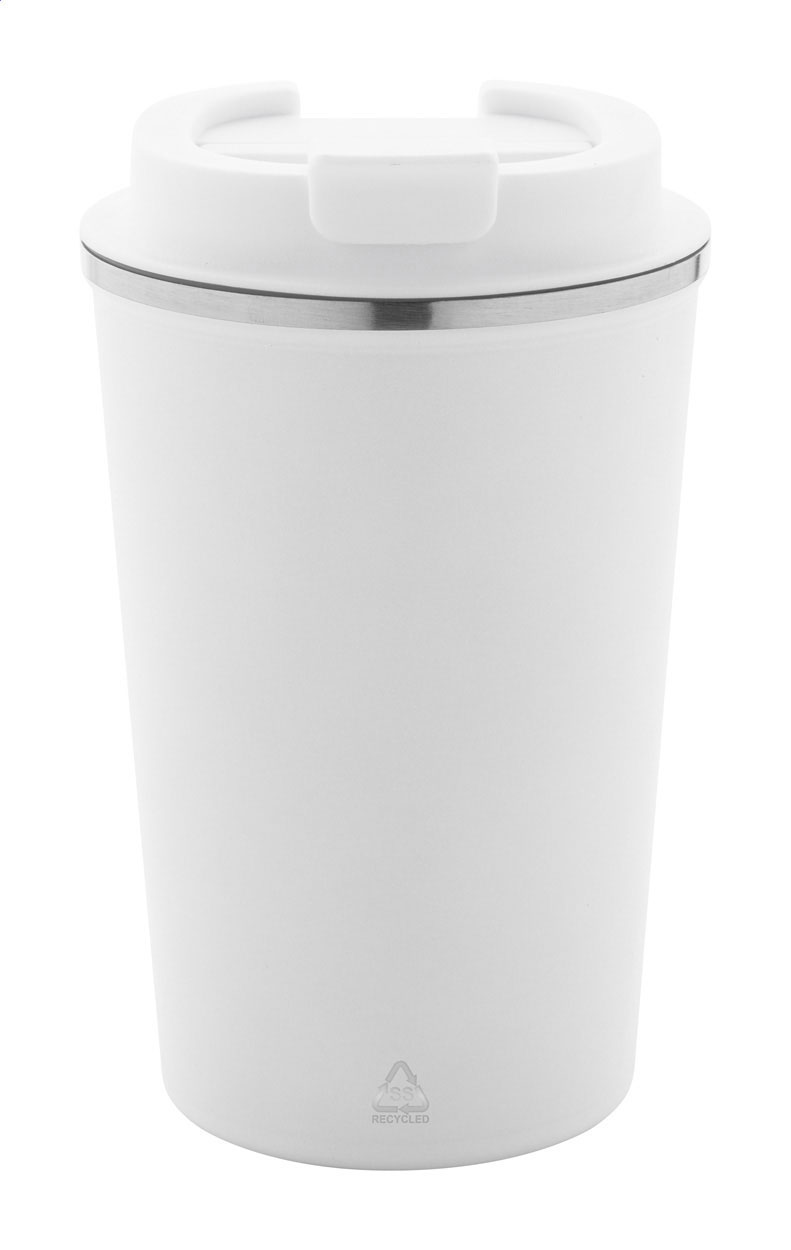 • Dvoustěnný termo hrnek z recyklované nerezové oceli s víčkem na pití z PP, 350 ml