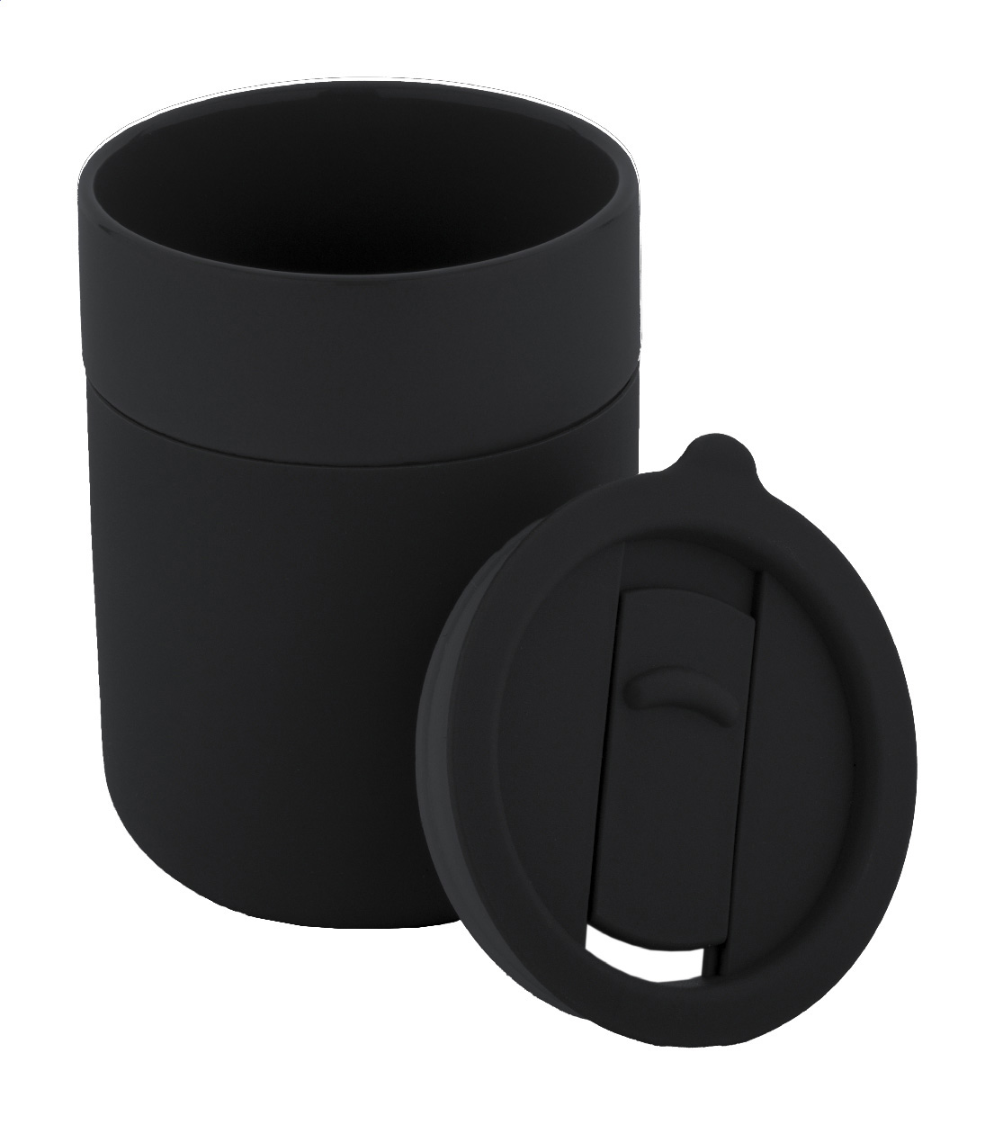 • Silikonem potažený keramický cestovní kelímek s PP plastovým odkapávacím víčkem, 300 ml