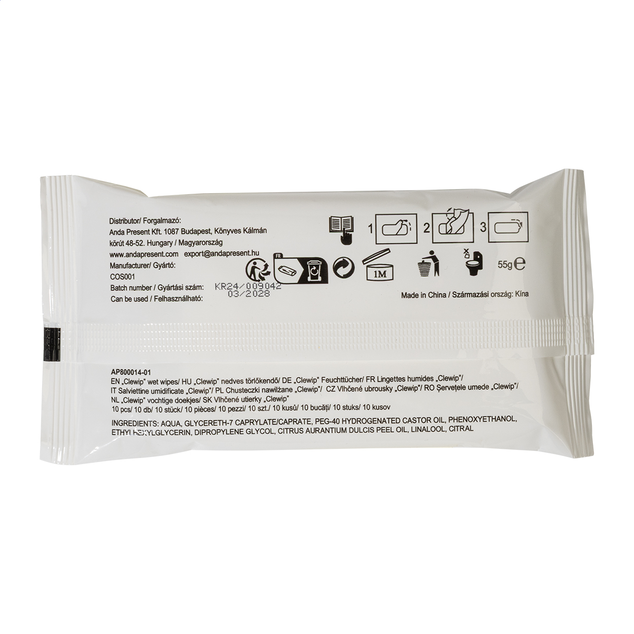 • 10 ks vlhčených ubrousků v uzavíratelném sáčku s bílým uzávěrem. Rozměr rozloženého ubrousku: 19×16 cm. Ideální pro tamponový tisk nebo celobarevné vinylové samolepky.